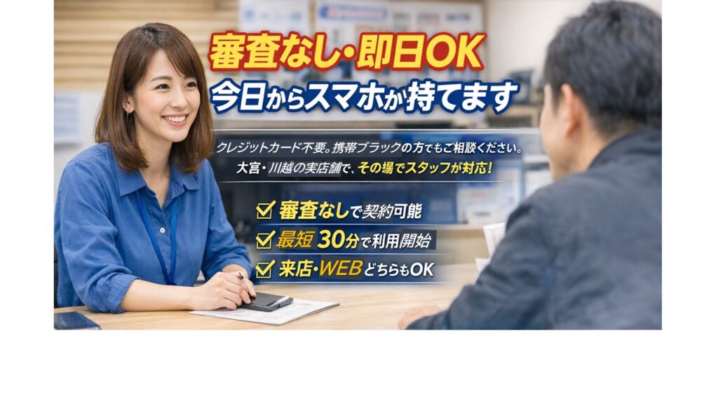 スカイセブンモバイル大宮店なら、審査なしで即日開通可能。